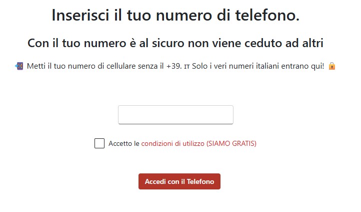 Come possiamo osservare adesso richiedono necessariamente un numero di telefono per la registrazione, cosa che nel 2023 era inconcepibile visto che appunto Ciaoamigos si proponeva come chat ANONIMA. Ma non basta. Se ci fate caso il numero deve essere NECESSARIAMENTE ITALIANO.