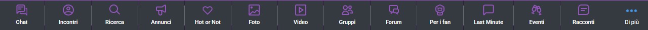- La sezione incontri: consiste in una lista di profili che è possibile filtrare per tipologia e preferenze