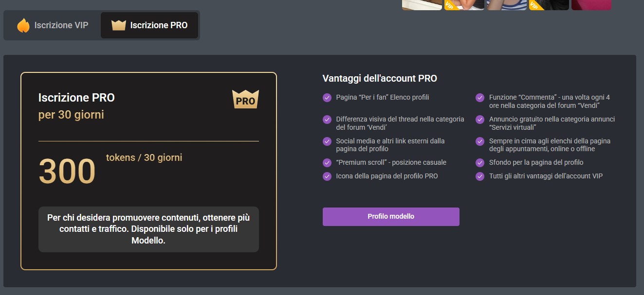 Abbonamento Premium per “profili modelli”