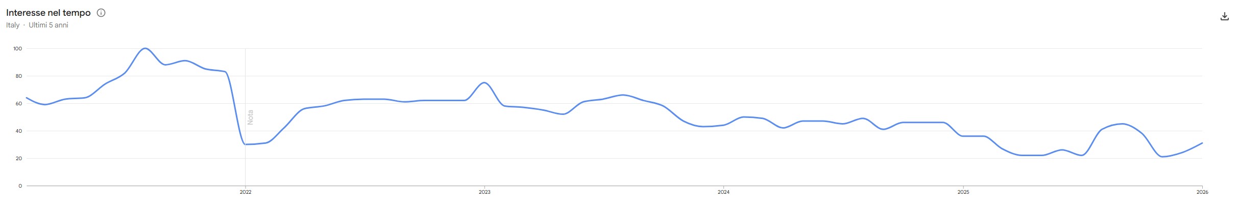 Nell'immagine qui in basso possiamo osservare il trend di popolarità del sito di Desiderya nel corso degli ultimi 5 anni.
