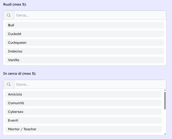 Successivamente mi è stato chiesto di specificare il tipo di account che più mi rappresentava. Come vediamo le scelte sono soltanto 4 ed abbinate ai ruoli, vanno a definire esattamente chi siamo e cosa stiamo cercando su Morenasex.
