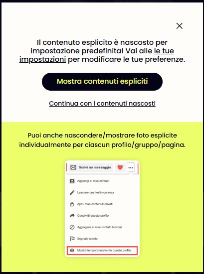 • Eventi: per scoprire feste della community o eventi privati a cui partecipare