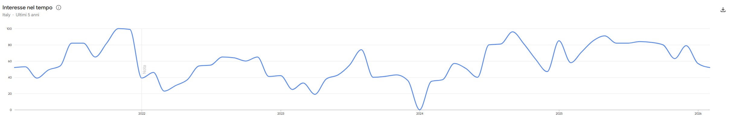 Come possiamo notare in Italia il sito non ha mai preso davvero piede e le ricerche mensili sono pochissime, con alcuni mesi in cui stanno praticamente a zero. Questo conferma ulteriormente le mie impressioni.
